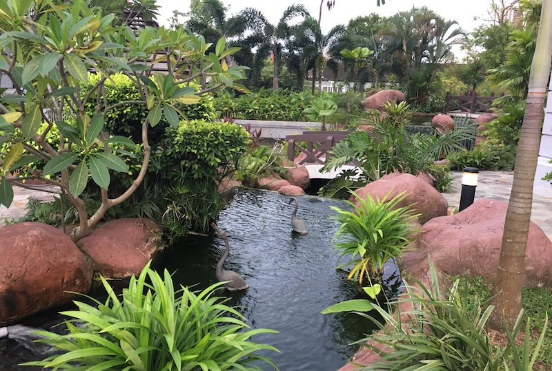 If you’re a fan of fake nature, there’s a stream behind the pool that looks like it was made at Universal Studios, complete with styrofoam rocks, a mini-waterfall and a pair of fugly fibreglass herons.