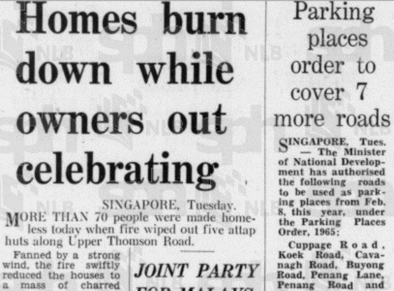 But not everything had a happy ending. More than 70 people became homeless when five attap huts along Upper Thomson Road burned down in blazes caused by firecrackers. Fortunately, no one was killed. Perhaps they should have listened to “S.S.S.”, who wrote in to protest the “New Year din”. “Surely we can usher in the New Year without the din from crackers?” the complainant said. “Thousands of dollars are spent to no useful purpose.”