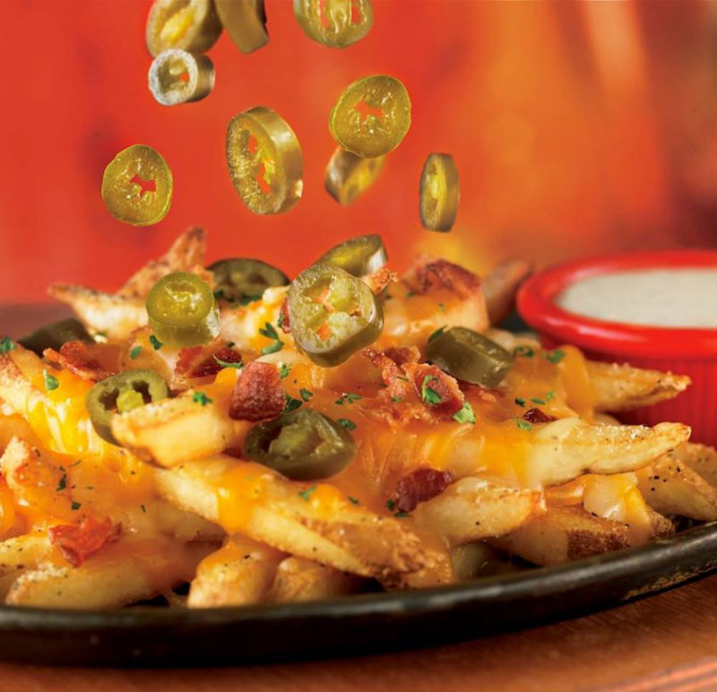 Your fry extraction skills will be put to the test thanks to the heavy layer of melted cheese on this dish. This all-American treat is served on a sizzling plate, which encourages all of the flavours of the applewood-smoked bacon, jalapenos, melted cheese and jalapeno-ranch dressing to meld together on the roughly cut fries.