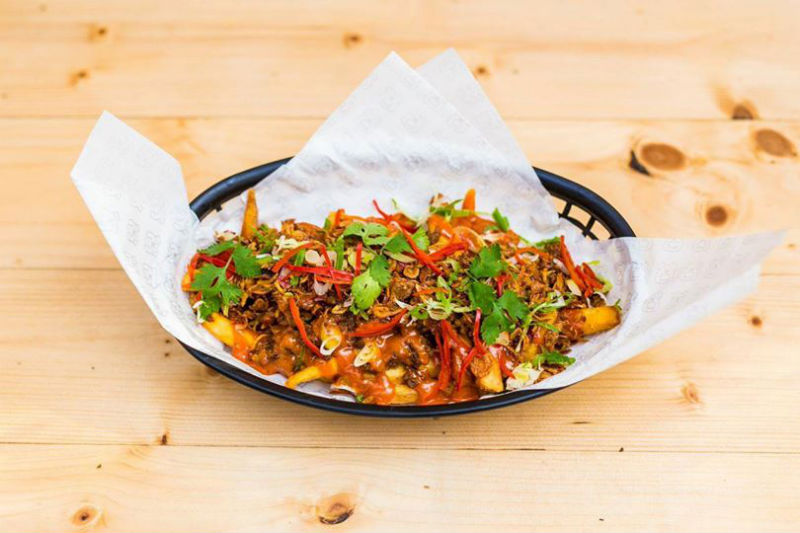 This decadent dish of Naughty Fries is almost pornographic! In it, you’ve got full-figured slices of fried potato slathered with condiments from the East and the West. These fries are sexily drizzled in a warm spiced bearnaise sauce and layered with chunky beef chilli, Parmesan cheese, fried shallots, minced red chilli and coriander. It’s time for penance.