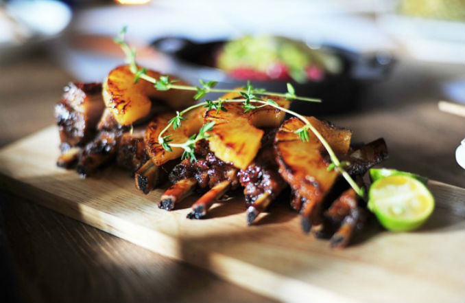 For this fusion small plate, lamb short ribs are marinated in a spicy blend—featuring local brand MOFO Chili’s Dodge the Bullet hot sauce—and then brushed with a sweet lime glaze. The heat level is pretty manageable. But you can request to have it spicier for a real chili burn. The sweet-savoury nibble goes great with drinks and will have you reaching for cocktail after cocktail to quell the flames.