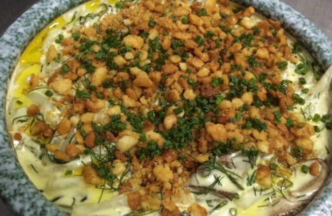 Chef Bjorn Shen subs mee tai mak rice noodles for the usual macaroni in this take on the comfort classic mac & cheese. The recipe also includes leafy greens from Quanfa Organic Farm, mushrooms from Kin Yan Agrotech and a topping of pita crumbs from Kampong Glam’s Pita Bakery (which also supplies all the restaurant’s bread daily).