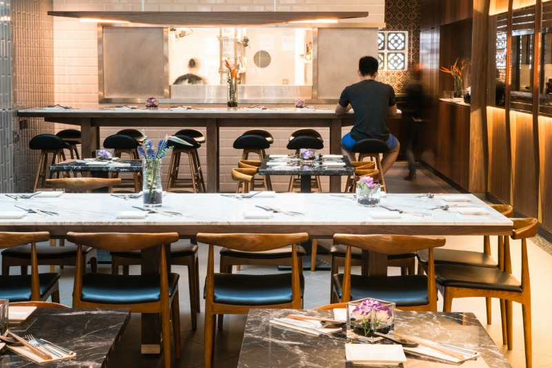 It’s undoubtedly a stylish joint. The décor features plenty of white marble, an open kitchen and a nice ceiling window to let in natural light. A wall of green creeper plants makes a stunning centrepiece for the space. A good fit for the CBD neighbourhood, the cosy 40-seater serves up a menu of fresh filling lunches in the day and Asian small plates by night.