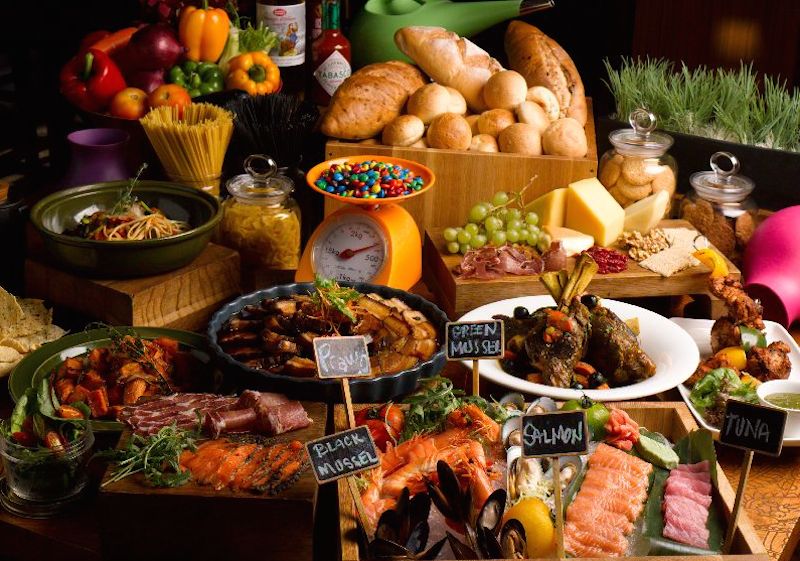 Hot and cold dishes, a carving station and a selection of desserts make up the hearty British-inspired spread at The Kitchen Table’s Cod Save the Queen. Start off with salads of potato and broad bean, endive and watercress, or doner kebab, then move on to piping hot plates of steak and mushroom pie, beer battered fish and mushy peas, pork sausages, beef and Guinness stew, and the like.