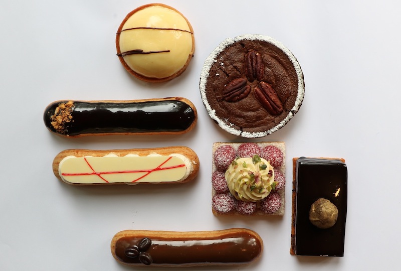 Other desserts include the berries tart ($8.50), a concoction of homemade mixed berry jam, pistachio mousse and raspberries atop a crunchy biscuit base, as well as coffee and vanilla eclairs and an orange loaf cake.