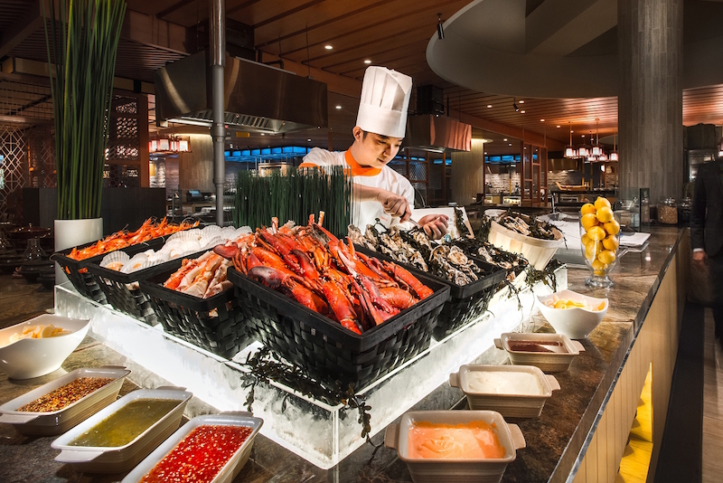 Roast meats – roast meats everywhere. Think charred Argentinian ribeye and Aussie lamb shoulder paired with crisp Yorkshire pudding and wood-fired hot cross buns at this meat-obsessed buffet. Little ones can gather in the Botanique Room to nibble on mac and cheese, beef nachos and mini red velvet cupcakes as they roam around the Kids Hall to watch cartoons, get creative with coloring books, and snack on popcorn.