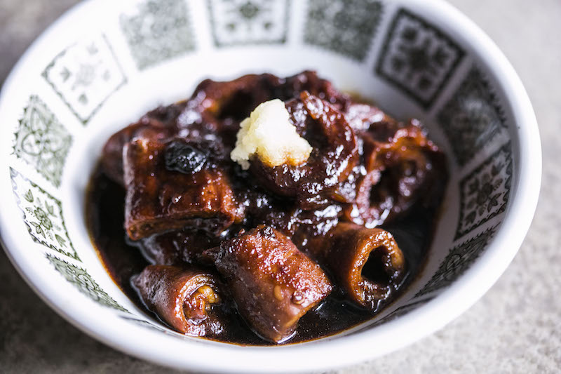 Besides signature favorites like smashed baby potatoes ($5) sprinkled with salted plum powder, Taiwanese fried chicken paired with nori mayo ($10), and slow-cooked pork belly ($10), new additions to the expanded menu include the chef’s renditions of Taiwanese classics such as bite-sized sausage patties ($10) and braised pig intestines topped with a spoonful of garlic ($10).