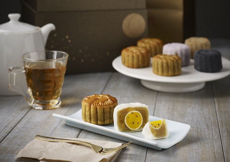 This year’s new snow skin flavours come in four varieties. The pastel lavender and crunchy white chocolate pearl mooncake hides a subtle Earl Grey truffle surrounded by white lotus paste, while the mango with white lotus paste encases a passionfruit truffle.