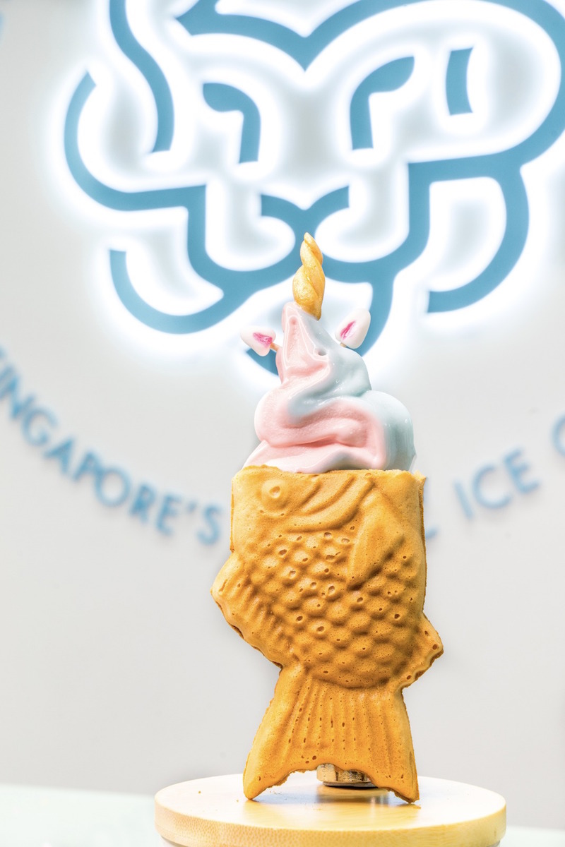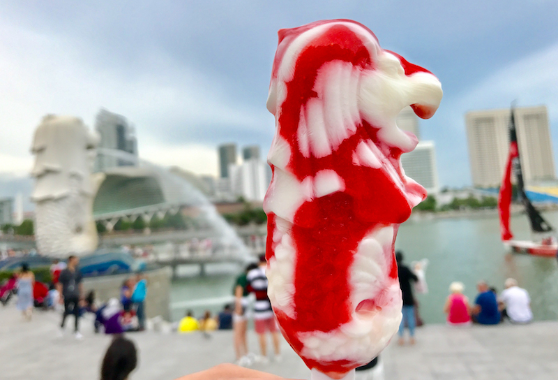 And the spirit of Singapore is strong here — which is great for reeling in tourists in the Esplanade area — with two patriotic highlights: the Merlion ice popsicle ($4.80) and the Esplanade ice cream ($11.80). The red-and-white icon of the island is a less-sweet strawberry and vanilla confection that’s apparently been endorsed by the Singapore Tourism Board (because why not), while the spiky green sculpture is made with durian, natch.