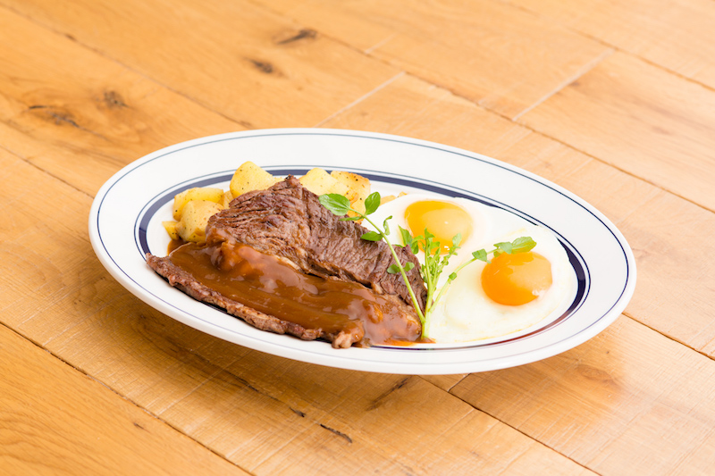 On the menu, you’ll find generously-sized items such as pancakes or waffles with a tower of whipped cream, fruits, and macadamia nuts ($19.90), cheese omelette with spinach, bacon, and a side of roasted potatoes ($19.90), beef steak and eggs ($25.90), and a Hawaiian Loco Moco dish ($18.90) consisting of rice, a hamburger patty doused in gravy, and two fried eggs.