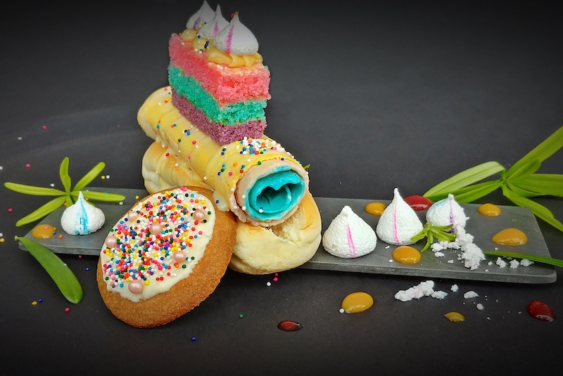 Here, hotdog buns replace white bread (not sure how we feel about that) and flavors come in options like strawberry, key lime pie, caramel, s’more or the ever-present, multi-colored Rainbow Fantasy. Each dish is also served up with cookies and baked dessert bars of their namesake.