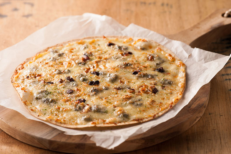 Other items on the menu include Gorgonzola Pizza ($11.90) with mozzarella, cheese fondue sauce, mixed nuts, and a honey dip, as well as the Party in New York ($30.90) platter of chicken tenders, prawns, grilled sausages, garlic breadsticks, crinkle-cut fries, and more.