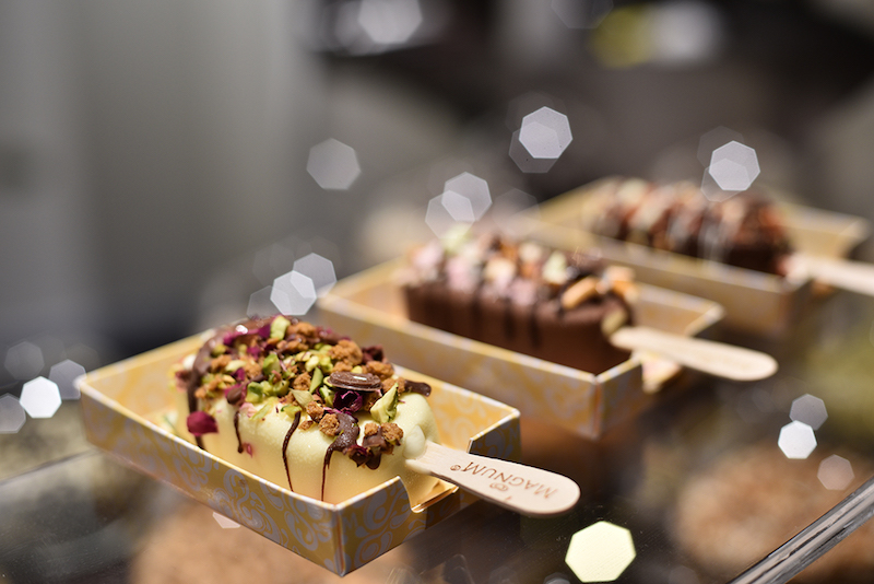 Anyway, the now-familiar Magnum Pleasure Bar makes an appearance here — the ice cream bar allows you to customize your own treat for a rather hefty price of $8. Start with a stick of vanilla ice cream dipped in dark, milk or white Belgian chocolate, then choose three toppings from 18 varieties such as pistachios, cocoa nibs and goji berries, or rose petals and chilli flakes for the more adventurous among us. Before your creation is handed over to you, it’s drizzled with a chocolate sauce of your choice.