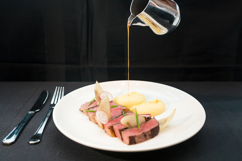 The gourmet aspect arrives in entrées such as the seaweed and caviar cold pasta ($16), the wagyu striploin ($24.90) with whipped potato, grilled onions and beef jus, and the pan-fried salmon with green sauce, salad, chicken jus and a delectable spiced poached tomato ($21.90).