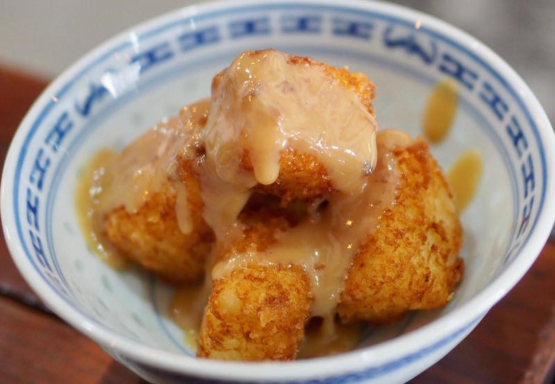 If you’d like something a little extra, pad your meal with a couple of sides ($5) such as fried chicken with seaweed mayo, deep fried tau kwa with century egg, or fried smashed potatoes with plum seasoning and chilli pepper spice.