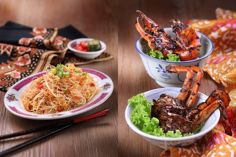 Kerabu bee hoon is a Peranakan version of Chinese rice vermicelli, tossed with a marinade of shallots, belacan, lime juice, ginger, and toasted grated coconut; while the classic black pepper crab finds its namesake spice as a significant source of income for Singapore way back when.