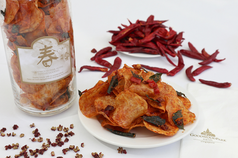 Move over, spicy salted egg yolk lotus root chips. This year’s soon-to-be crowd favorite from Goodwood Park Hotel is its salted egg yolk yam chips with addictive spicy Sichuan seasoning ($36.80/jar). The resulting numbing sensation is nothing a packet of chrysanthemum tea can’t wash down.