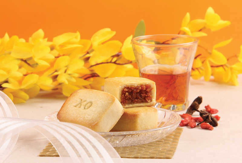 Pineapple tarts come in all shapes and flavors this year, including chrysanthemum and hae bee hiam at Bakerzin ($23.80/assorted box). The former gives off a subtle floral scent, while the latter has a hint of spice amidst the sweetness of the paste. For the more atas among us, try the buttery tarts ($32/box) stuffed with pineapple and wolfberries that’ve been soaked in XO liquor for up to a month.