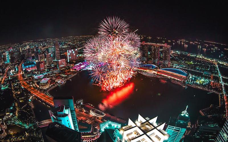 Where: CÉ LA VI at the top of Marina Bay Sands, with a front view seat to exploding fireworks over the bay.