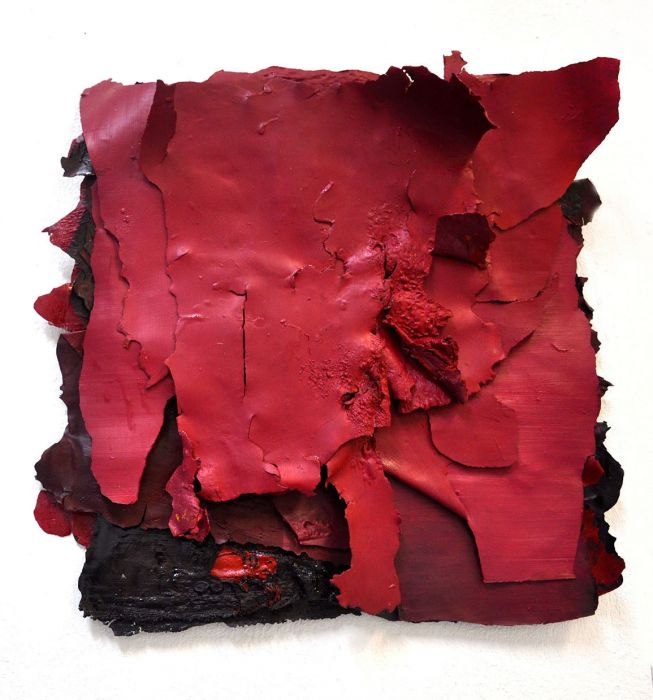 Part of the series Fragments in Time, this painting appears rugged and worn — an example of Gupta’s experimental style, where she visibly manipulates oil paint into a three-dimensional structure. By doing so, she creates a work of art that intelligently hovers between the lines of painting and sculpture. Composed of several layers of burnt stripped paint, Gupta is able to give her work a great sense of depth in terms of colour and texture. The different gradients of reds, paired with the raw and exposed qualities left on the surface, gives it a worn yet fragile quality. Here, Kanchana Gupta’s exploration of issues concerning social fragmentation is essentially represented through the transformative nature of her work. Nathalie Soo.