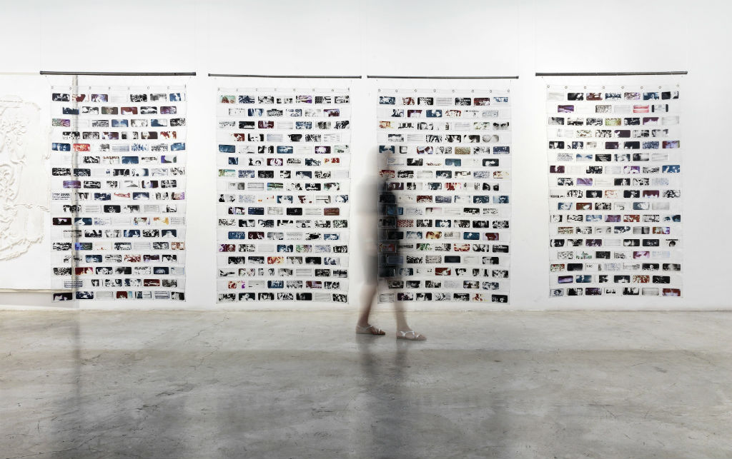 Acclaimed Indonesian artist Entang Wiharso’s Self Portrait is a far cry from the traditional self-portraits of modern artists. The work is made up of four panels of acrylic pieces, whose shape remind us of iPhone cases. Created during the artist’s residency at STPI, each acrylic piece is screenprinted with an image Wiharso gathered from the Internet. The images range from glimpses of seminal moments in 20th and 21st century history, to snapshots of pop culture icons. Each piece represents a part of the artist’s memory, but by using identifiable images, Self Portrait also represents a collective memory, a self-portrait of both the viewer and the artist.