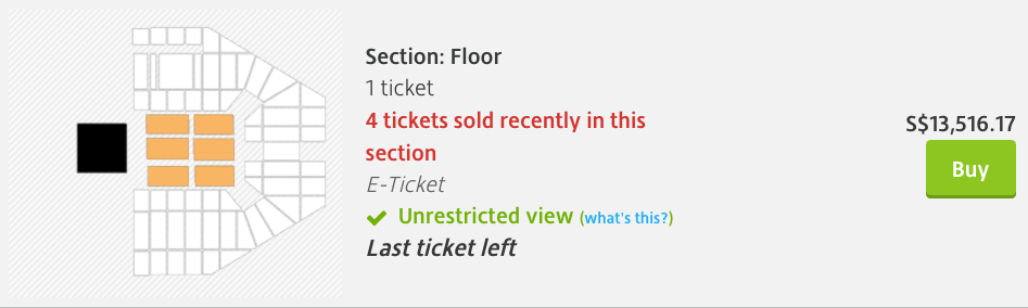 Then there’s this joker who’s trolling the whole thing by selling a ticket for the floor section at over $13,000. It’s such a dumb stunt that we almost want someone to actually buy it.