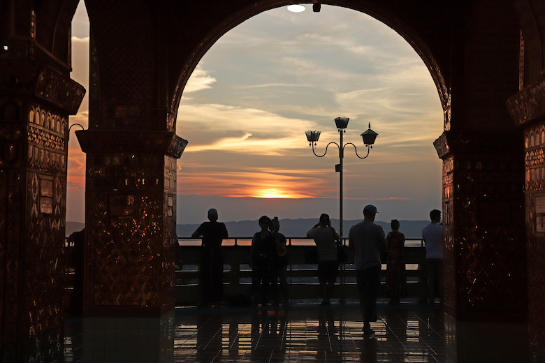 The climb is only half an hour, and each step ascending is well worth your time. As the sun sets, golden rays gleam off pagodas and you can gaze out over the Irrawaddy and the walls of the Royal Palace. It’s a scene that you’re not likely to forget, no matter how many sunset peaks you’ve scaled, or how many hot air balloon rides you’ve taken.