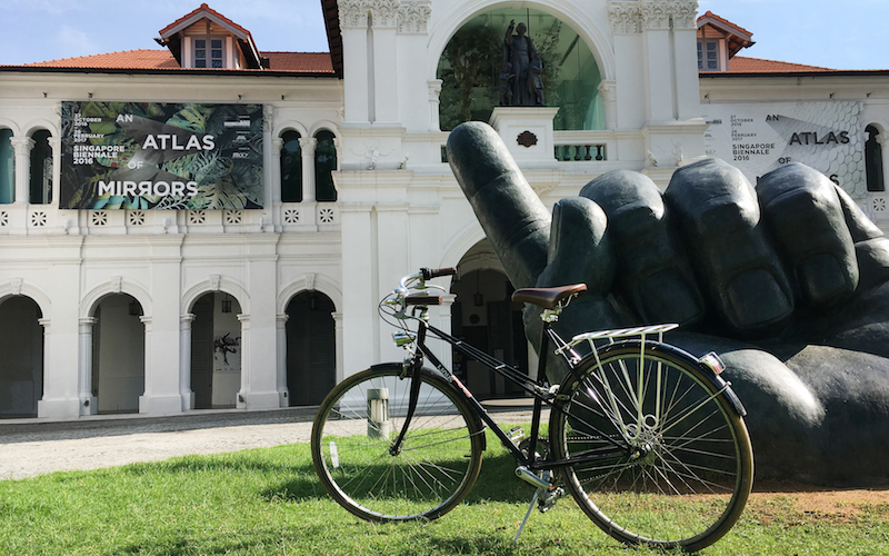 Just head to the Singapore Art Museum and rent a bicycle to shuttle between the seven venues with no hassle at all. These wheels, courtesy of Hello, Bicycle!, are available at the merch booth in the museum lobby. They come at no cost, but you’ll have to provide a photocopy of your ID and a $50 deposit (which will be fully refunded upon the bicycle’s return).