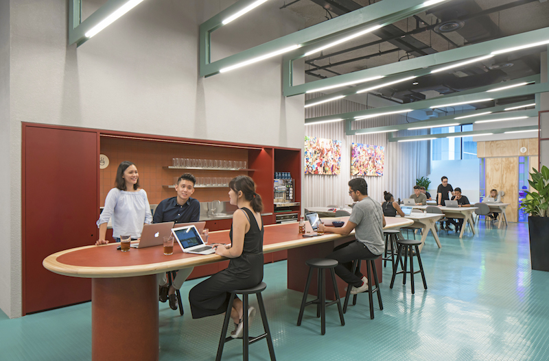 You’ll find hotdesks, private offices and duplex penthouses (with views of the surrounding CBD buzz) in the space, and other tenants and facilities in the building include bakery Plain Vanilla on the first level, a 20m outdoor lap pool on level six, boutique gym Ritual on the third floor, a sky garden on level 18, and a bar and member’s lounge on the fourth floor.