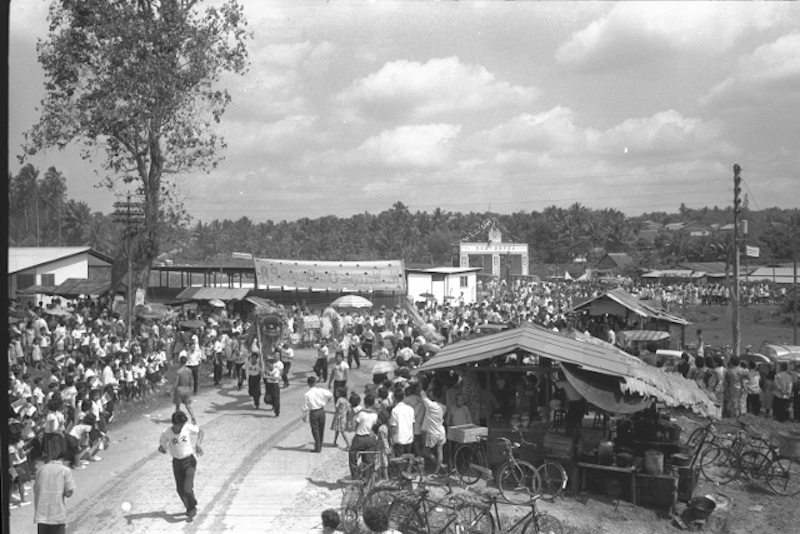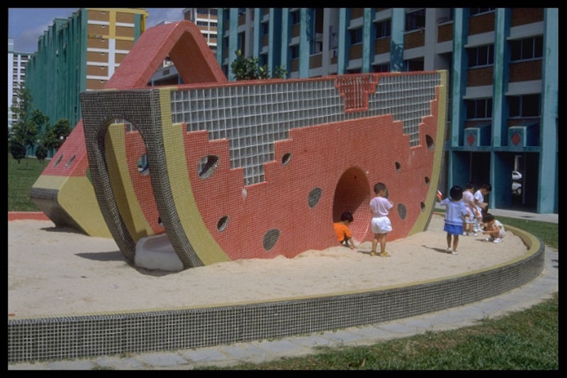 Watermelon playground at Tampines Central Park, 1993. Photo: Ministry of Information and the Arts Collection, courtesy of National Archives of SingaporeKampong Teban, located at the 8th milestone of Tampines Road, 1986. Photo: National Archives of SingaporeThe landfill at Lorong Halus, 1980s. This was one of the last night soil disposal stations, officially discontinued in 1987. Photo: National Environment AgencyA dragon dance performance during then Prime Minister Lee Kuan Yew’s tour of Tampines, 1963. Photo: Ministry of Information and the Arts Collection, courtesy of National Archives of SingaporeThe former Golden Palace Holiday Resort, which was built in 1967 and closed in 1971. Its only remnant is the fishing pond in Pasir Ris Town Park. Photo: National Museum of Singapore Collection, courtesy of National Heritage BoardA sand quarry in Tampines, 1970s. Much of the sand from sand quarries in the neighborhood was used for the East Coast Reclamation Scheme and in the construction of places like Toa Payoh Town and Changi Airport. Photo: Tampines GRC Community Sports Clubs