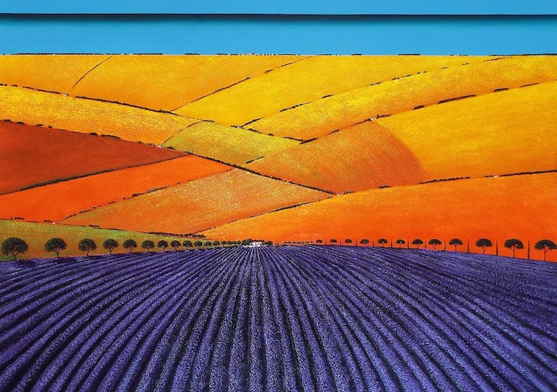 His paintings capture scenes that range from wild meadows and rows of vineyards to lavender fields and sparkling waterfalls.