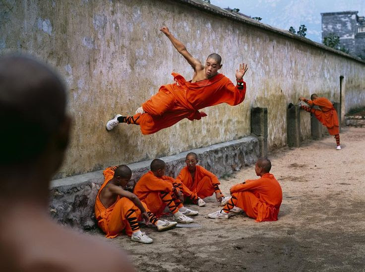 Photos: Still Fisherman (Sri Lanka); and young monk runs along the wall over his peers at Shaolin Monastery (China) via press release.