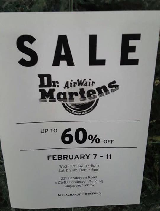 You have until Feb 11 to make your way to the fifth level of Henderson Building to get your hands on discounted Doc Martens. The industrial area in Bukit Merah is a little out of the way, but hey, anything for some iconic footwear that won’t burn a hole in your pocket for once.