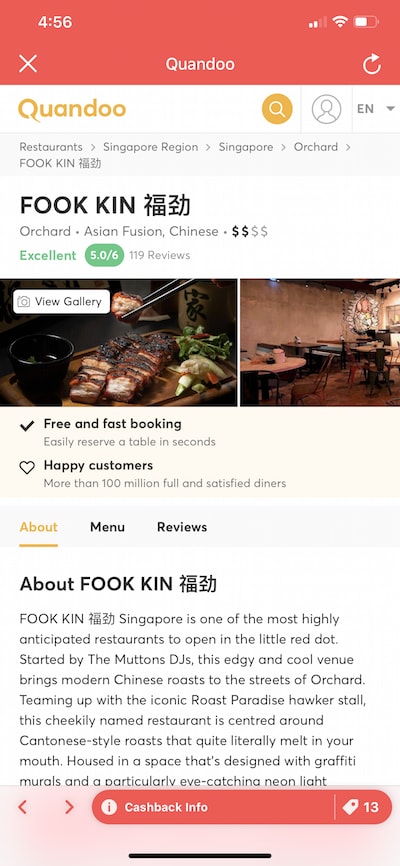 Let’s say you make a reservation on Quandoo via ShopBack at Fook Kin this Saturday. You can earn $4 Cashback plus qualify for your first Tic Tac GO order.