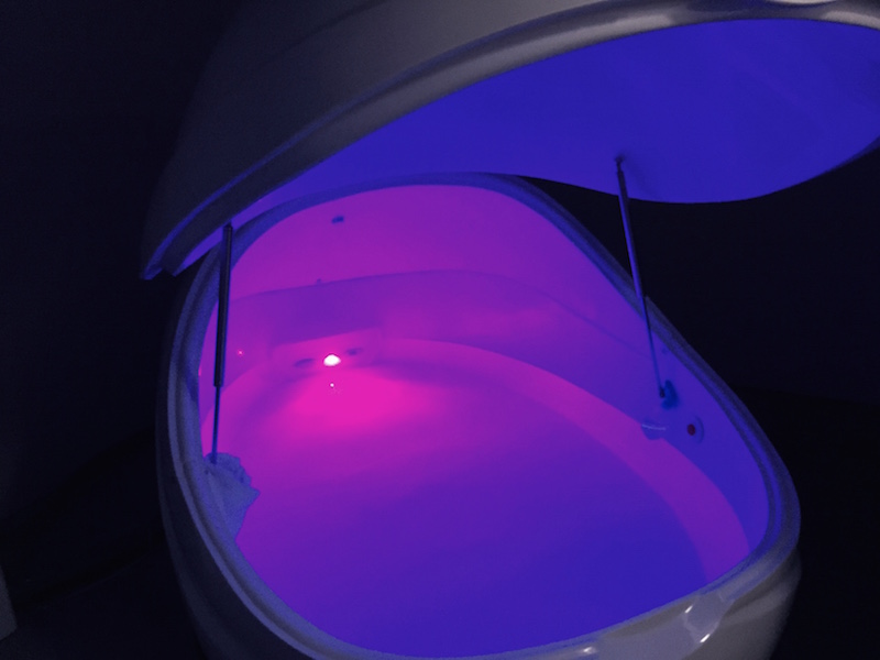 Inside, I’m greeted by a Portal-like pod, more welcoming than alienating. He runs me through the procedures: use the provided shower facility before stepping into the tank, which were emanating varying colors of soft hues. Two buttons glisten inside — the blue controls the lights, the red is for emergencies. He asks me to let go completely of any pre-conceptions, anxiety and doubt about floating — my experience will be what it will be.