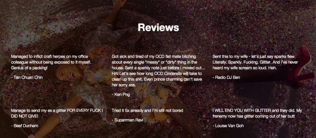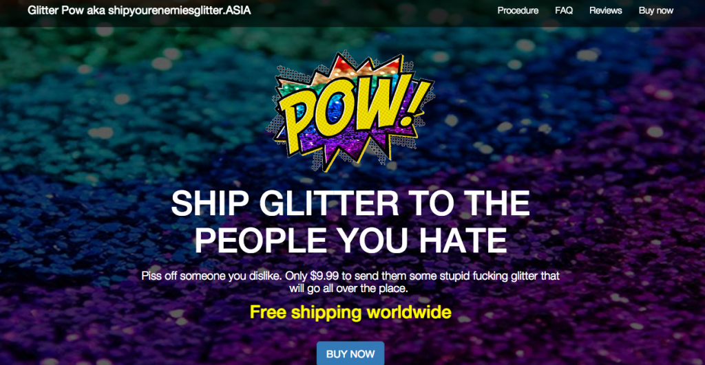 That’s when shipyourenemiesglitter.asia came about. Started by a Thomas Tan, the website is dedicated to doing exactly what Carpenter aimed to do: ship glitter to people you hate.
