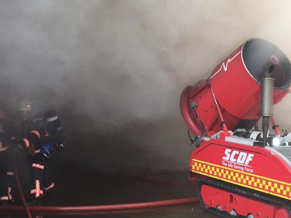 They were alerted to the fire at 6.40am. The SCDF deployed seven fire engines, three light fire attacking vehicles, nine support vehicles, three unmanned firefighting machines and an ambulance due to the large scale of the inferno.