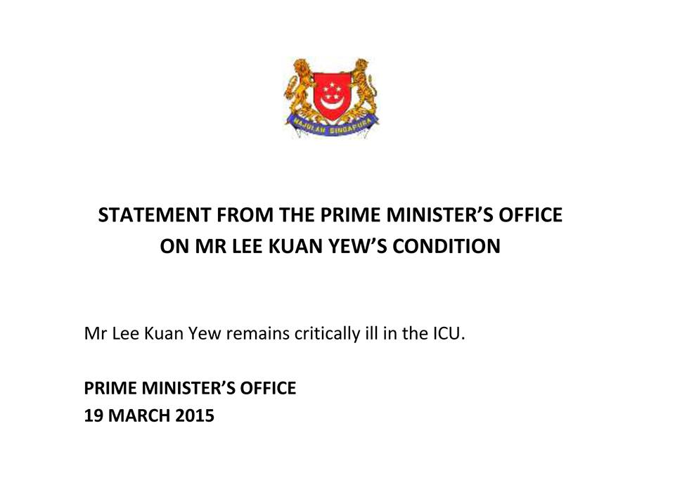 Amidst all the frenzy on social media, in Singapore General Hospital and on international news outlets last night, the Prime Minister’s Office (PMO) released an update at 11.20AM on the health condition of former Prime Minister and Singapore icon Lee Kuan Yew — and no, it’s not a hoax.