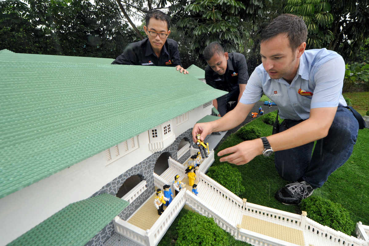 It took a team of six model builders and one model designer, Stefan Bentivoglio, over 2,300 man hours — 95 days — to complete this amazing structure at Legoland Malaysia Resort.