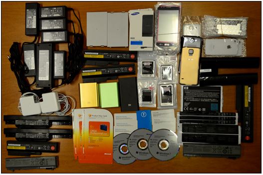 The stash included laptop power adaptors, batteries, hard drives, DVD-ROMs, LCD screens, computer software as well as mobile phone accessories such as phone casings and power banks.