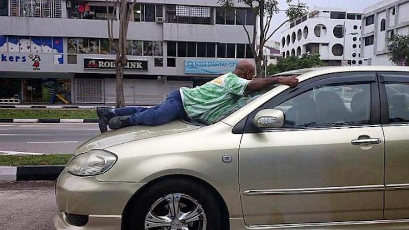 Naidu then decided to drive to the nearest neighbourhood police post at Bukit Batok, with Harish uncomfortably perched on the bonnet. The police had to warn him several times to get off the car when Naidu reached the police post.