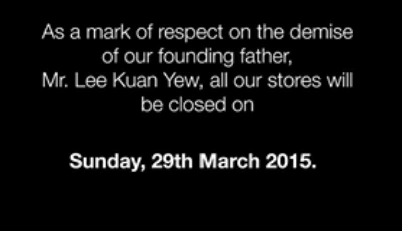 All Metro department store outlets will be closed this Sunday as a mark of respect for the passing of first Singapore Prime Minister Lee Kuan Yew.