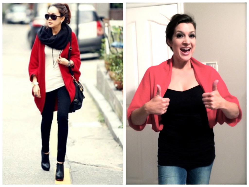 Ferrier said she liked the left “fantastic head-to-toe look” so much she Pinned it, but the coat turned out to be more of a shrug — “that model had to have been what, THREE FEET TALL?”