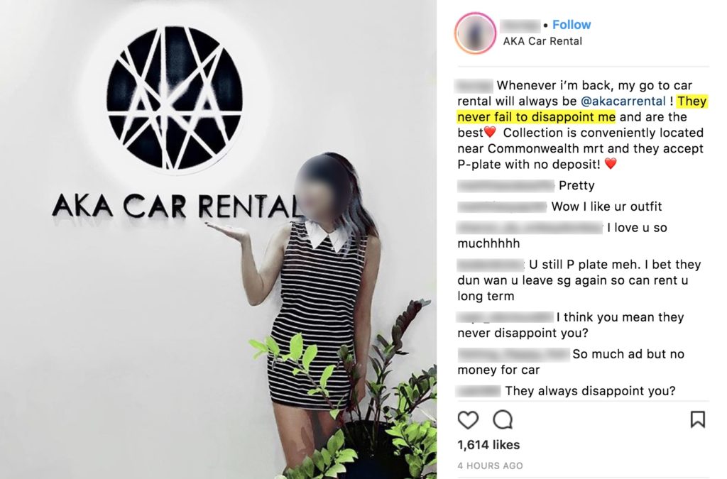 Alas, another social media influencer didn’t get the memo. In an Instagram post earlier today endorsing car rental firm AKA Car Rental, she also never failed to disappoint us with the usage of the very same “never fail to disappoint” gaffe.