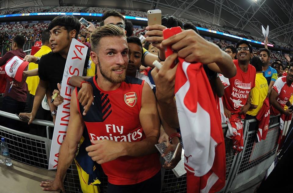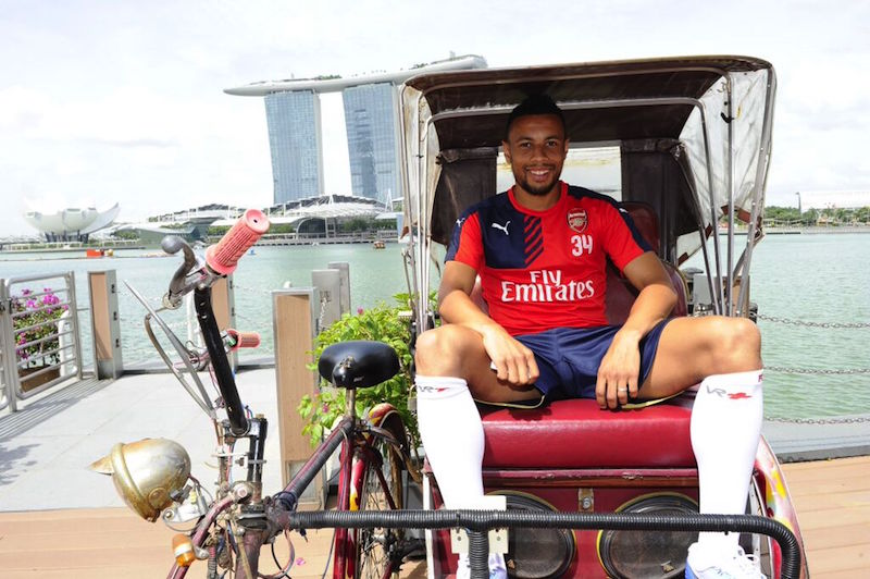 Arsenal’s top lads Francis Coquelin, Laurent Koscielny, Aaron Ramsey and Theo Walcott managed to tuck into some succulent local fare, giving the thumbs up to satay and beef rendang prepared by The Fullerton Bay Hotel’s The Clifford Pier restaurant. Just don’t expect any love for durians from Arsenal FC though. Other than satiating their appetites, the team also managed to take some pretty awkward promo pictures, like this one below.