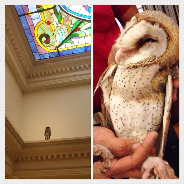 In his post, he wrote that the beautiful owl had perched itself comfortably after flying into the building overnight.