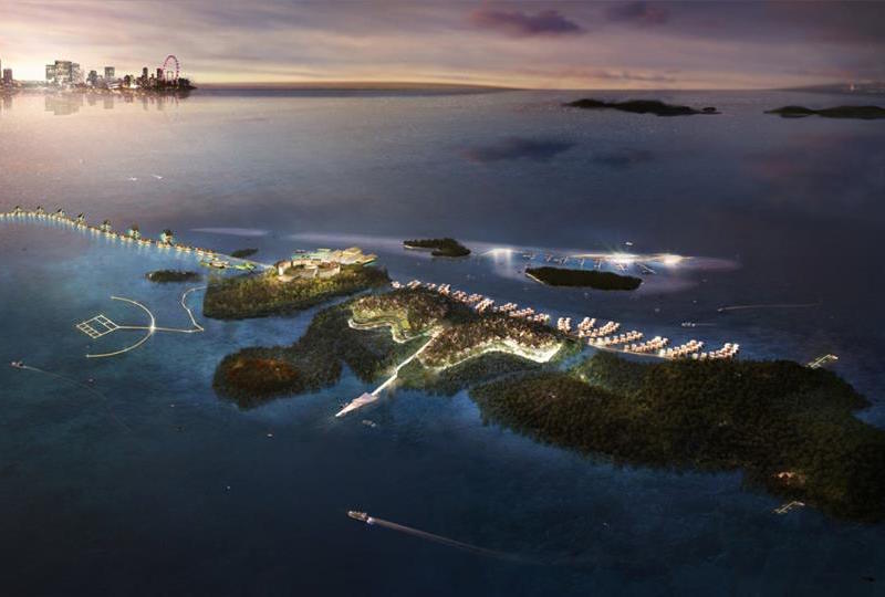 The resort website describes the development, which is 16 kilometers (10 miles) from Singapore, as the world’s biggest eco park, where visitors can stay in villas and enjoy nature trails and water sports.