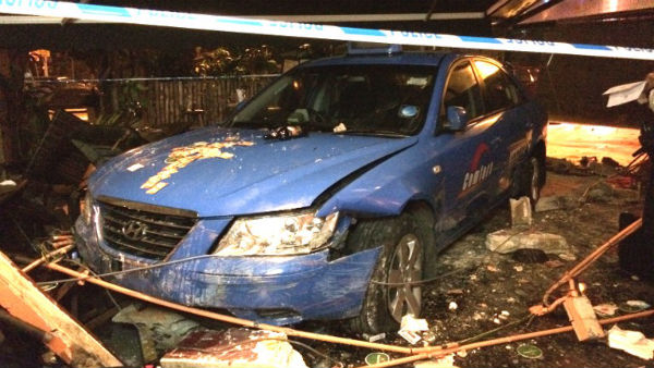 Photo: The Comfort DelGro taxi had gotten into an accident with another car before crashing into Georges Mad Bar & Grill; Channel NewsAsia