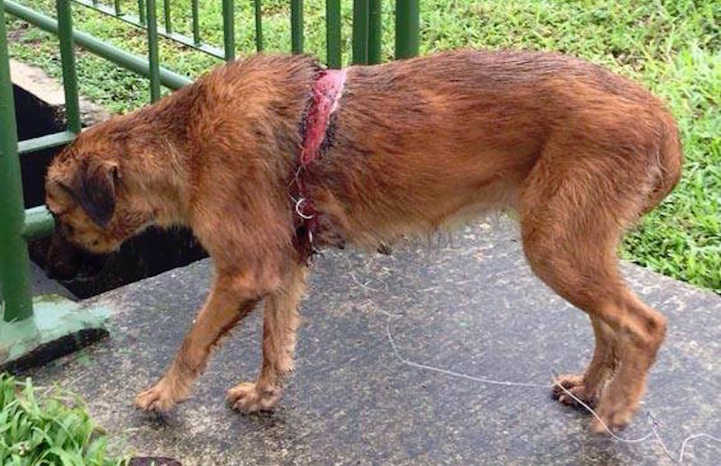 A stray dog’s agony was painfully recounted on the Facebook page of Action for Singapore Dogs (ASD), which posted a photo of a canine with horrible wounds around its torso due to a steel wire trap.
