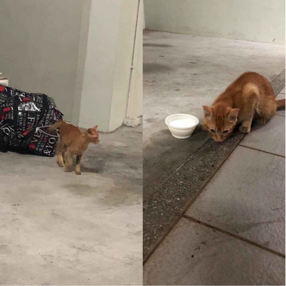 Yvonne Teoh and her family had parked their car in their usual spot in a sheltered carpark when they heard a meow in the vicinity. When they couldn’t see the cat to go along with the noise, her husband started looking around extensively.